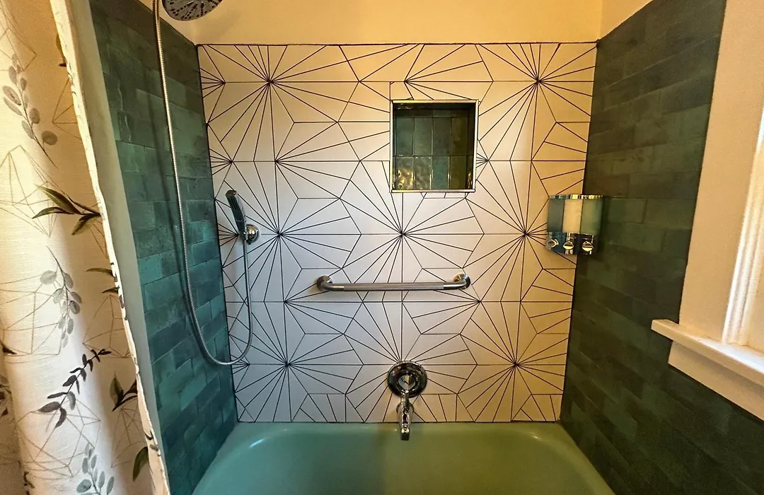 Cet établissement Villa Charming 1920S Retreat Modern Kitchen 5 Minutes To Dining And Med District comprend une salle de bains avec une toilette séparée, une douche et une machine à laver. Un sèche-cheveux et des draps de bain sont fournis pour le confort des clients.
